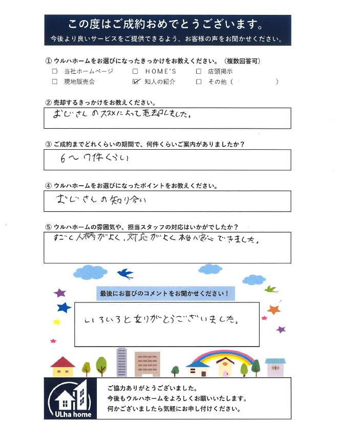M様、この度のご売却では、ご紹介から弊社をご利用いただきまして、誠にありがとうございました!