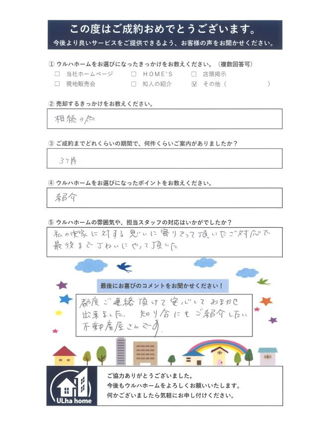 T様、この度のご売却では、ご紹介から弊社をご利用いただきまして、誠にありがとうございました!